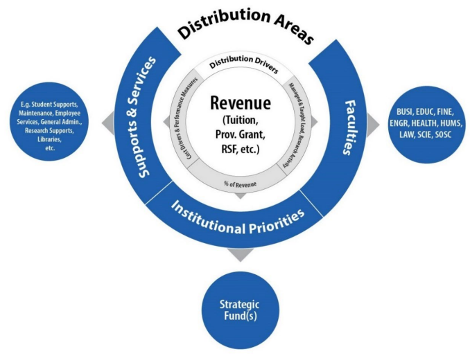 Additional incentive-based budgets will come from revenue-generating activities such as international enrolment, professional graduate programs, micro-credits and funded academic program expansions. This structure encourages innovation, entrepreneurialism, and the development of new programs, enabling faculties to invest in their strategic goals and priorities.