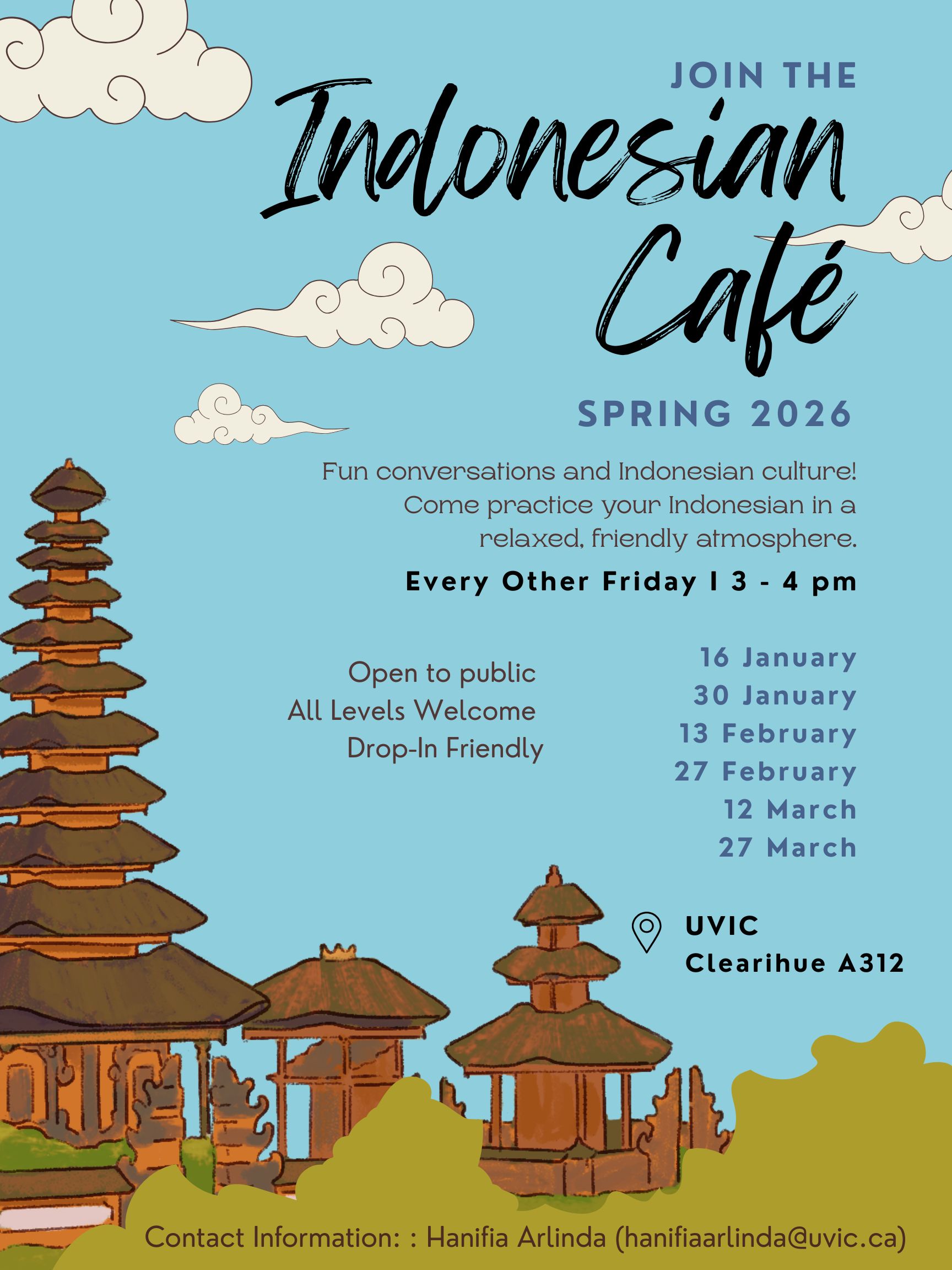 Indonesian Conversation CaféOct 10, 2025 Share: Facebook Twitter LinkedIn Email Read more: Indonesian Conversation Café