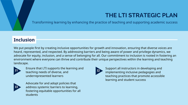 - Ensure that LTI supports the learning and teaching needs of diverse, and underrepresented learners