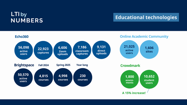 Accessibility continues to be central to our work. We created new resources for instructors on Universal Extended Time, including a three-part podcast series, and continued to build tools and guides that support inclusive teaching practices, including an Accessibility focused community of practice. We also partnered with the Faculties of Education and Social Sciences in creating and co-hosting the Pathways to Belonging symposium in August. This collaborative event brought together experts, researchers, educators, and mental health professionals to examine research on accommodation demand in post-secondary, affirming practices, and approaches to building student resiliency.