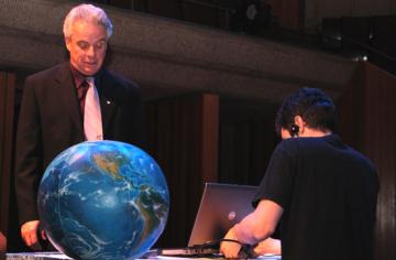 Throughout the talk McDonald took the audience through his adventures experiencing firsthand the cutting-edge in Canadian science, particularly in the fields of astronomy and particle physics. His travels ranged from SNOLAB, located near Sudbury, ON, where researchers in the world’s deepest underground laboratory are studying the physics of dark matter and neutrinos, to reporting on the Canada-France-Hawaii telescope at the top of Mauna Kea, Hawaii. He also touched on Canada’s contributions to space science, particularly the development of a Canadian instrument on NASA’s upcoming Mars rover “Curiosity.”